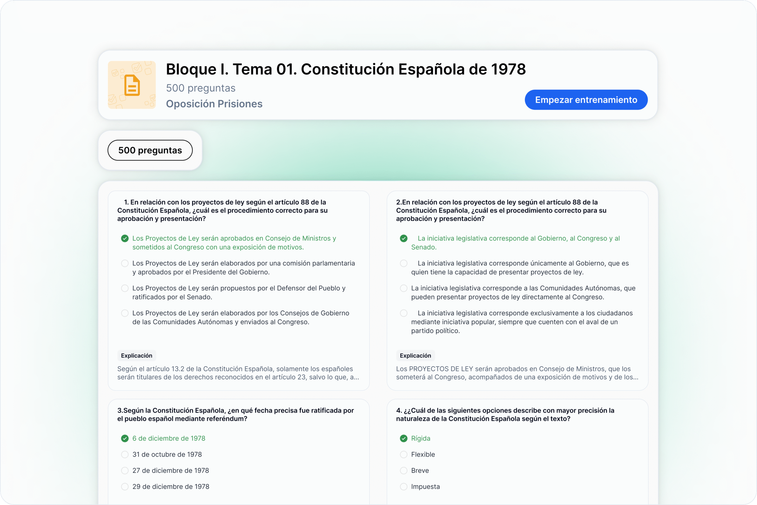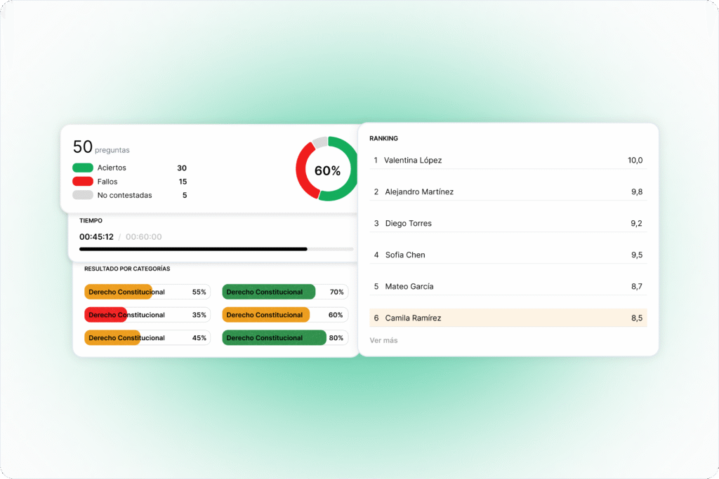- Ranking comparativo con otros opositores para medir tu nivel real.