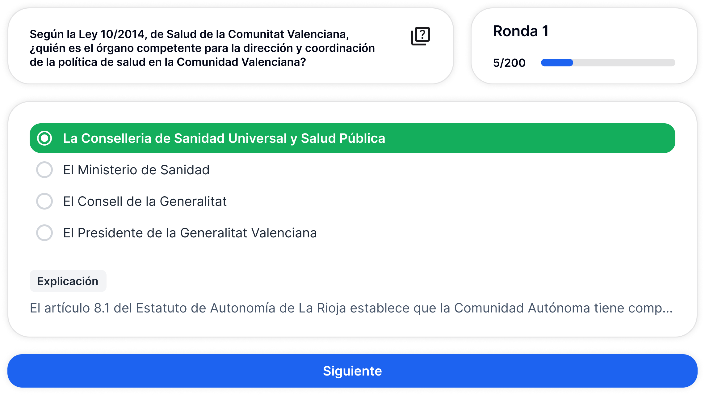 Practica con test por bloques, simulacros cronometrados y más de 17.000 preguntas revisadas según la última OPE 2025.